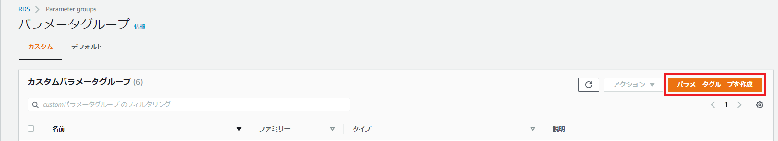 東京リージョン:https://ap-northeast-1.console.aws.amazon.com/rds/home?region=ap-northeast-1#parameter-group-list:
