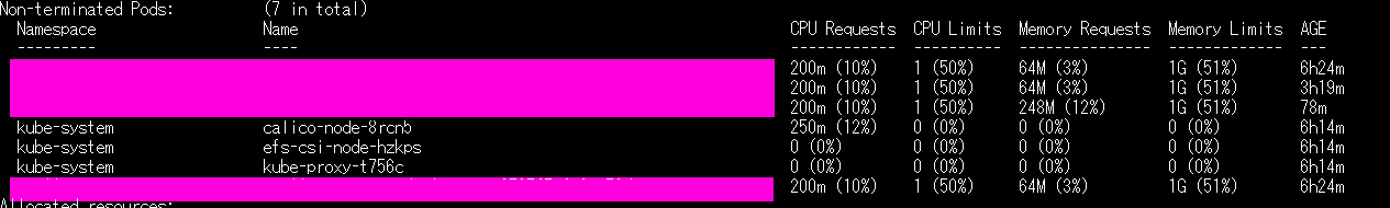 1<span>kubectl describe node ip-128-16-100-15.ap-northeast-1.compute.internal</span>※出力結果は長いので割愛