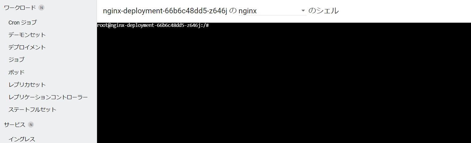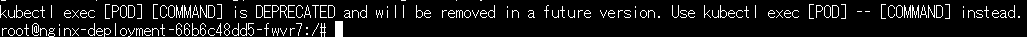 kubectl exec –stdin –tty <Pod名> — /bin/ash - 成功すれば以下のようにPodに入れる。