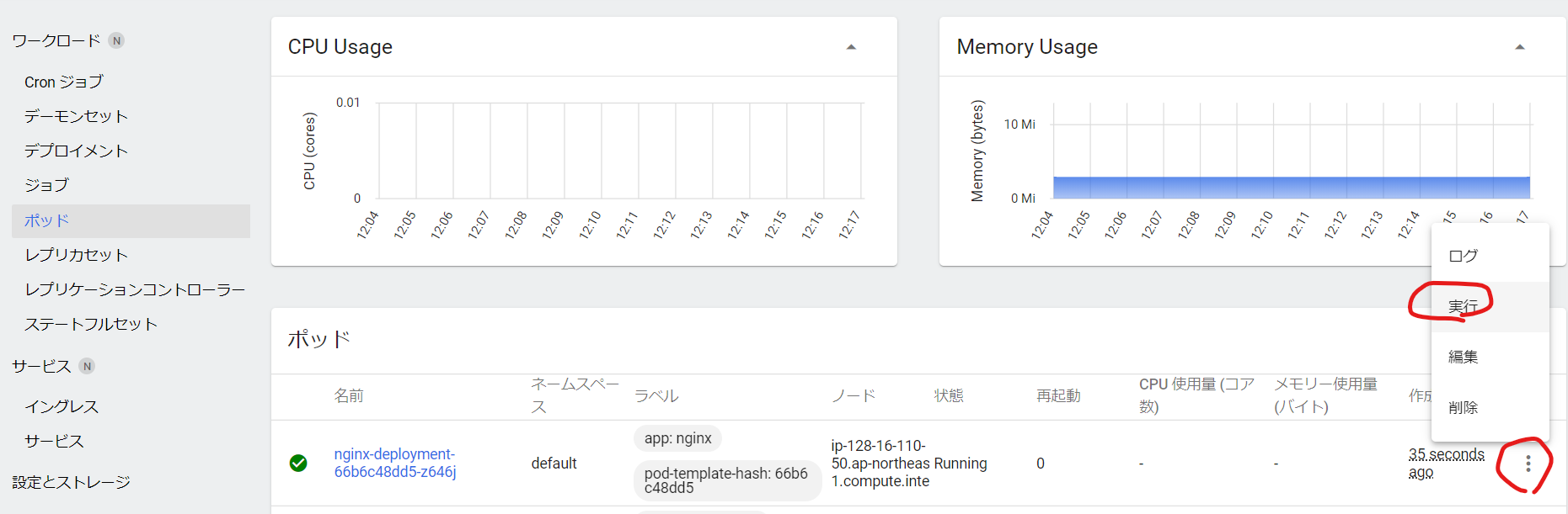 1<span>kubectl apply -f nginx.yaml</span> - kubectlコマンドで正常にデプロイされたことを確認する。
