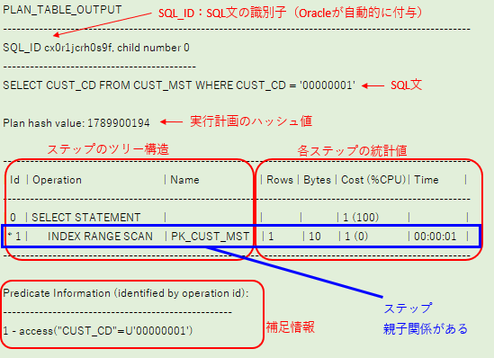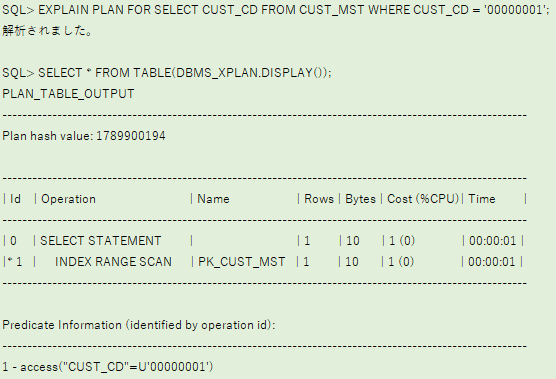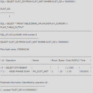 - EXPLAIN PLAN実行後にDISPLAYを実行して、実行計画を確認する。この方法は、実際にSQLを実行しないため簡単に確認することが可能です。