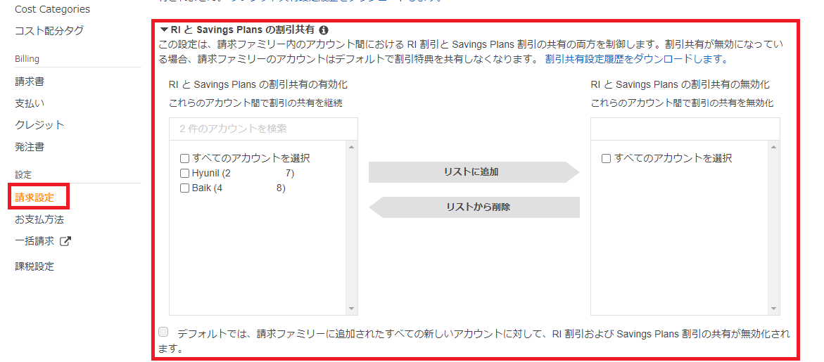 AWS Organizationsにリザーブドインスタンス と Savings Plans の割引共有設定確認
