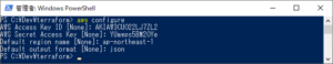 アクセスキーをAWS CLIに登録します。下記のコマンドを実行してください。