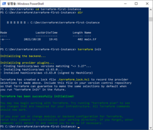 初期化すると定義されているproviderがダウンロードおよびインストールされます。