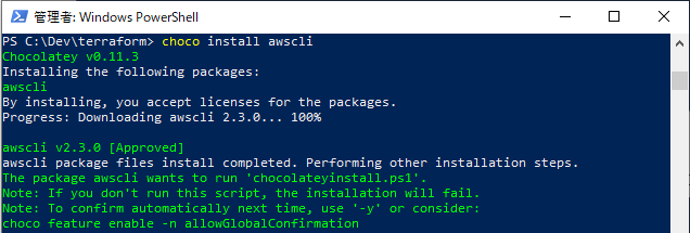 せっかくchocolateyをインストールしたのでchocolateyからAWS CLIをインストールしてみます。