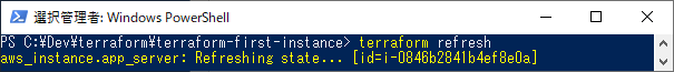 「terraform refresh」リソースデータを実際のリソースに同期します。
