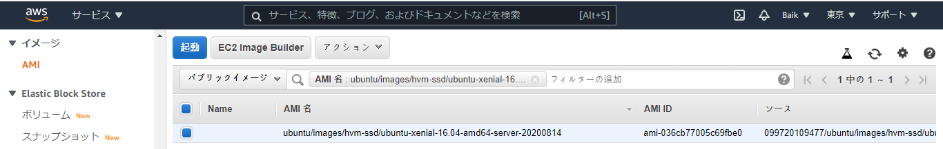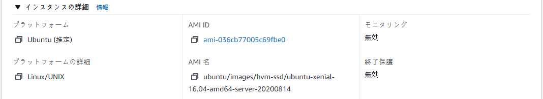 以前AMIは「ubuntu-precise-12.04-amd64-server-20170502 : “ami-66182e01″」を使いましたが今度は「ubuntu-xenial-16.04-amd64-server-20200814:”ami-036cb77005c69fbe0”」に変更してみます。