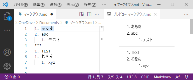 ・数字の前に半角空白3つ記載するとインデントできる。