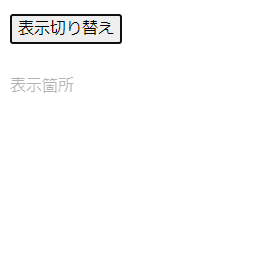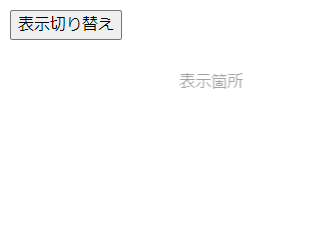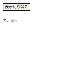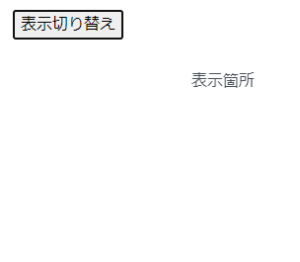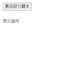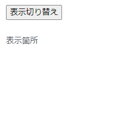 “表示切り替え”ボタンのクリックイベントでdisplayをtrue、falseに切り替えており、pタグで囲まれた”表示箇所”にv-if=” display”と指定して、文言の表示を切り替えを行っています。