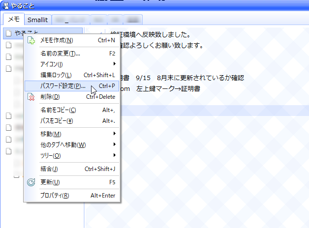 重要なメモにはパスワードをかけることも可能