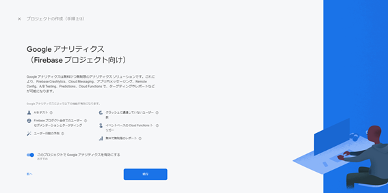 ログインしたら右上のコンソールへ移動から、プロジェクトを作成。