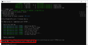 これでfirebaseの設定は以上です。コマンド画面へ戻りましょう。
