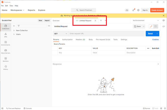 「Headers(6)」を押下する。Query Paramsと同じ方法で記載する - 同じAPIを複製タブで管理したい場合