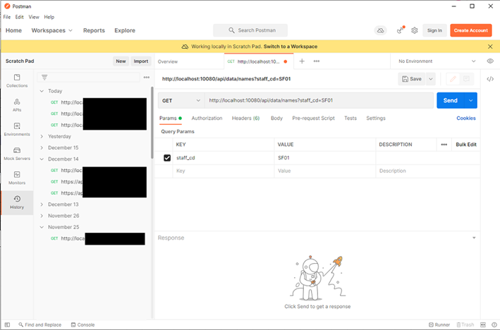 ※個人的には記号の抜け漏れを防げるためQuery Paramsでの入力をオススメする - 「Send」ボタンを押下することでAPI通信が実行される