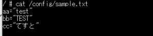 apiVersion: v1 kind: Pod metadata: name: configmap-demo-pod spec: containers: - name: demo image: alpine command: ["sleep", "3600"] volumeMounts: - name: config mountPath: "/config" readOnly: true volumes: # Podレベルでボリュームを設定し、Pod内のコンテナにマウントします。 - name: config configMap: # マウントしたいConfigMapの名前を指定します。 name: sample-config # ファイルとして作成するConfigMapのキーの配列 items: - key: "sample.txt" path: "sample.txt" |