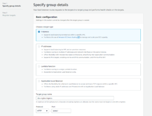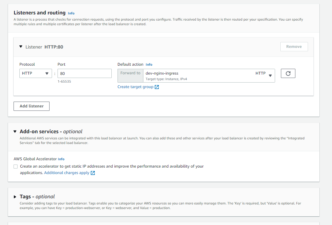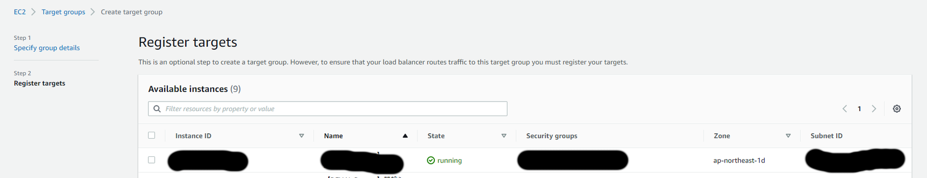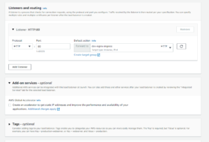 Listeners and routingに【1】で作成したターゲットグループを指定する