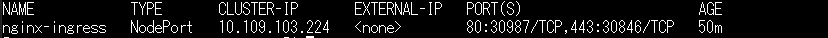 apiVersion: v1 kind: Service metadata: name: nginx-ingress namespace: nginx-ingress spec: type: NodePort ports: - port: 80 targetPort: 80 protocol: TCP name: http nodePort: 30987 # ★ここを追加する - port: 443 targetPort: 443 protocol: TCP name: https selector: app: nginx-ingress |