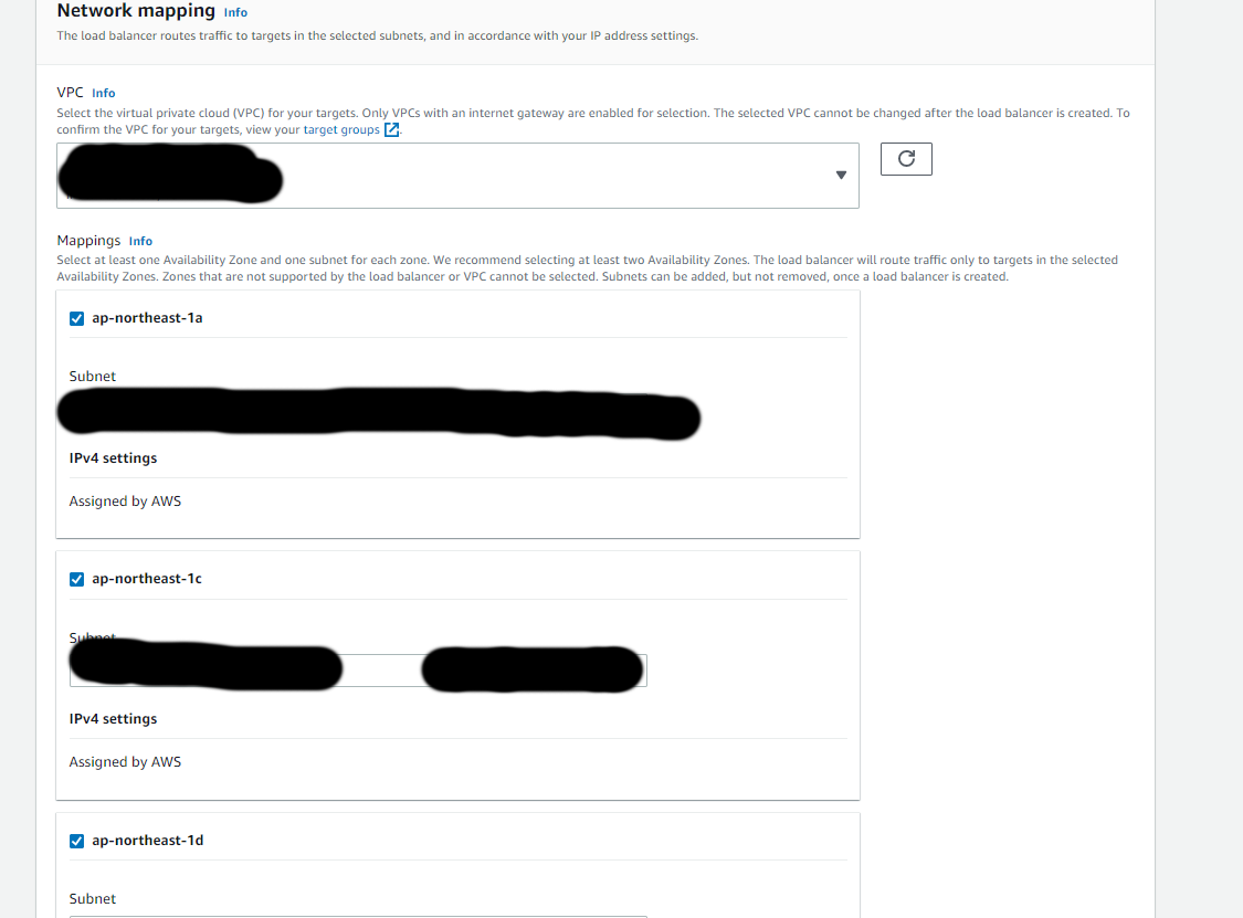 Network mappingに任意のVPCとパブリックサブネットを指定