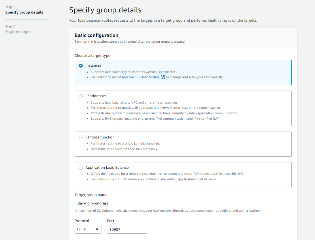 NGINX Ingress ControllerとAWS Application Load Balancerを静的なポート(NodePort)で連携する