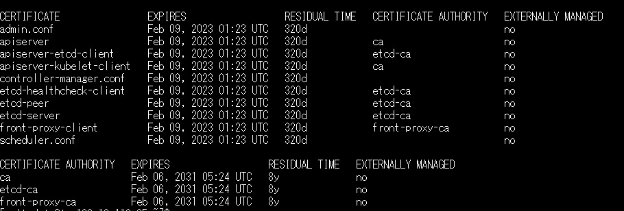 KubernetesのTLS証明書はデフォルト1年なので定期的に更新する必要がある。