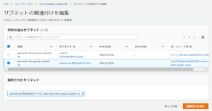 作成したルートテーブルを選択し、サブネットの関連付けを編集します。