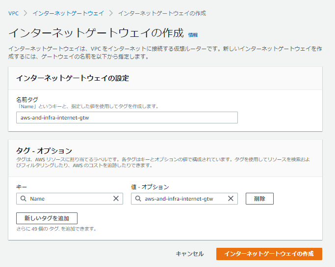 インターネットゲートウェイは名前を設定するのみでOKです。