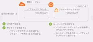 ネットワーク構築までの手順としては、VPC(Virtual Private Cloud)を構築し、