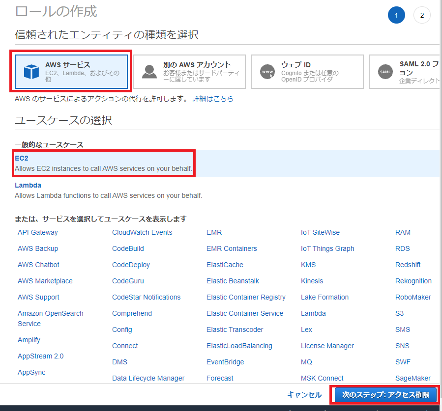 STEP8 IAMロール作成:次にIAMロールを作成します。