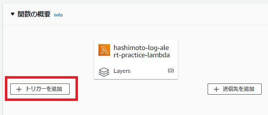 Lambdaを作成します。ログに特定文字の文字があった場合に起動するように設定します。