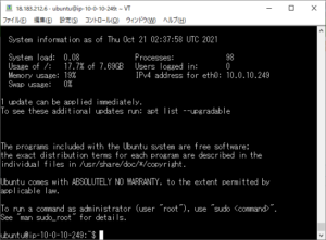 1を選択します。ubuntuは、Linuxとその他ソフトウェア群を1つにまとめたものです。