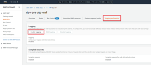 転送したいログがあるWeb ACLsのAWSコンソールから「Logging and metrics」を選択し、「Enable logging」ボタンを押します。