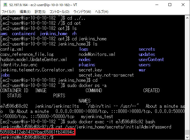 dockerコンテナ内のディレクトリは基本的に「/var/jenkins_home」です。EC2のディレクトリは、私の場合は「/opt/jenkins_home」にしていますが、