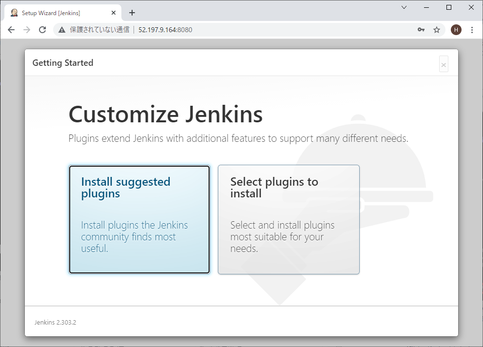「Install suggested plugins」をクリックして初期設定を行ってください。