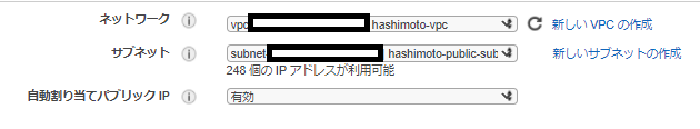 今回はテストとして環境構築を行うため、パブリックサブネットに構築を行いました。