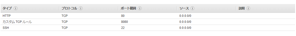 セキュリティグループは、上記のように3ポート使用します。