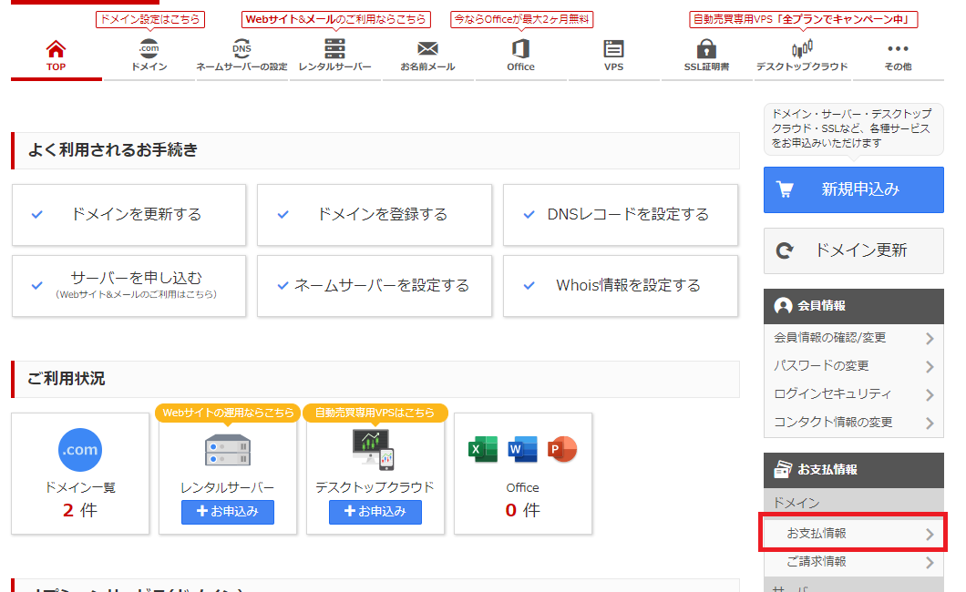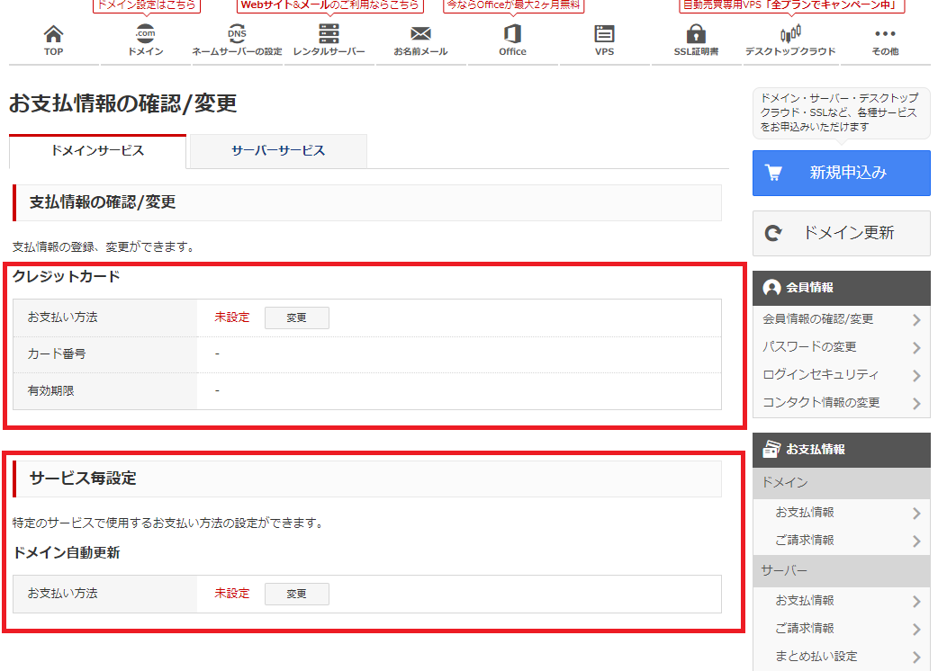 ドメイン購入サイトでは、自動支払設定をオフにしていないと予期せぬ支払いが良く発生します。テストでドメイン設定を行う場合は、自動支払設定は必ずオフにしましょう。