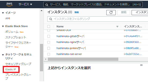 STEP3:EC2のダッシュボードからElastic IP を選択します。