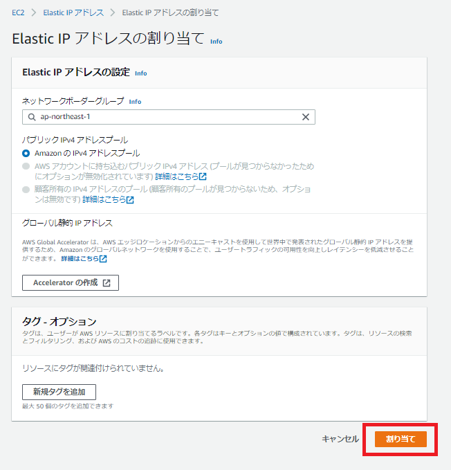 STEP4:Elastic IPアドレスの割り当てを押します。