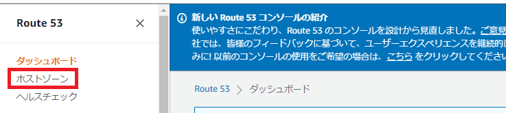 STEP8:Route53のダッシュボードに戻り、ホストゾーンタブをクリックします。