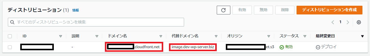 現在の状態だと、CloudFrontのデフォルトのドメインで画像が表示されてしまいます。そのため独自ドメインで表示させるために設定を行います。