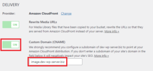 最後にWordPressのOffload Mediaで画像を開いたときに独自ドメインで開くように設定します。
