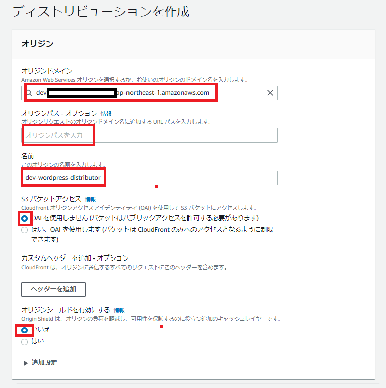 S3の特定のバケット内のデータをCloudFrontと連携したい場合は、オリジンパスを指定します。詳しい指定方法はわからないので調べてください! -