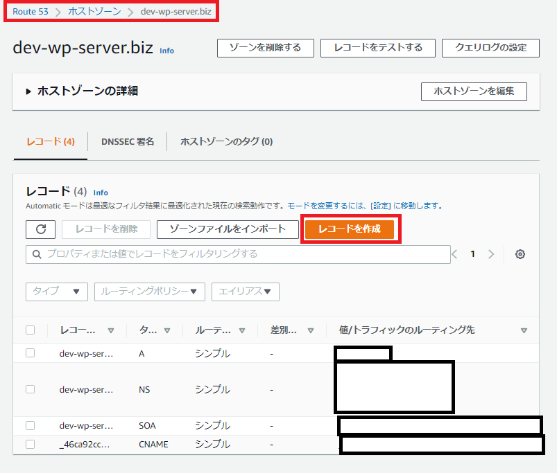 ※すでにお名前ドットコムで独自ドメインを取得し、Route53でNSをAWSに変更しています。そのためサブドメインを登録できる状態です。