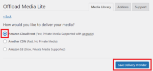STEP1:Offload MediaのDELIVERYのAmazon S3のChangeをクリック