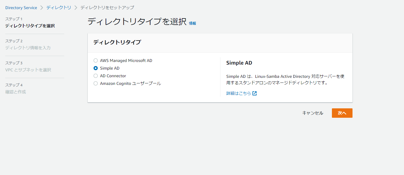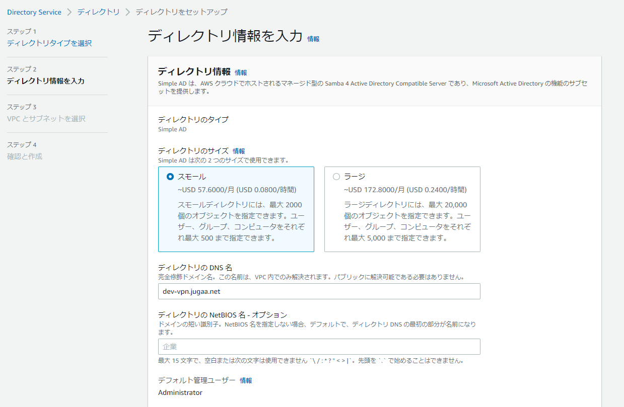 AWSコンソールからSimple ADを作成する