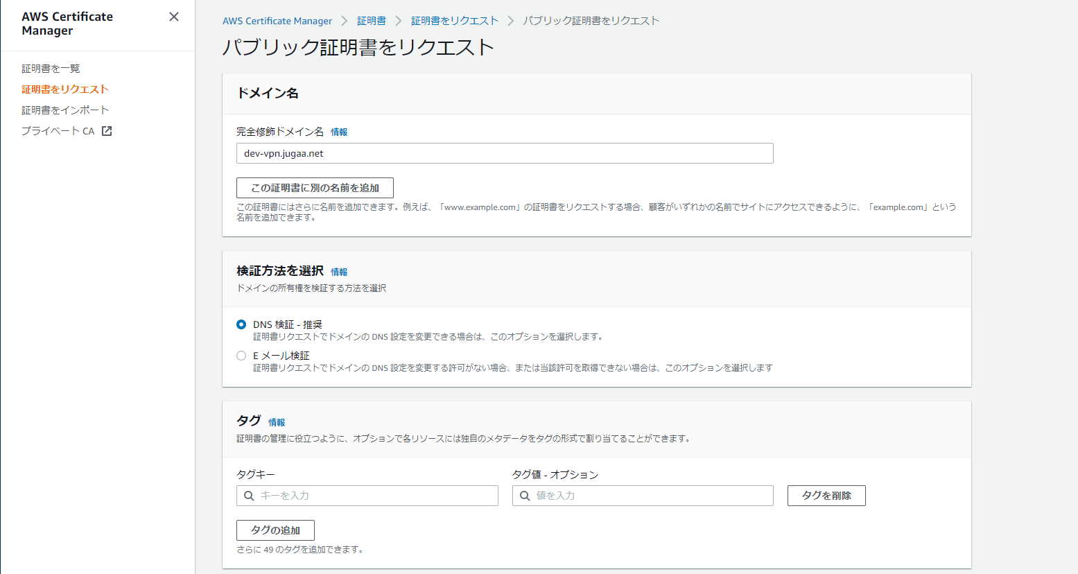AWS Certificate Managerで証明書を発行する