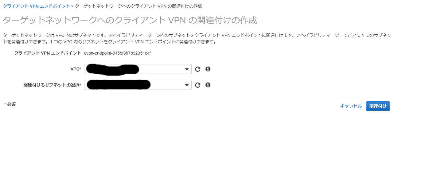 関連付けるサブネットを選択する