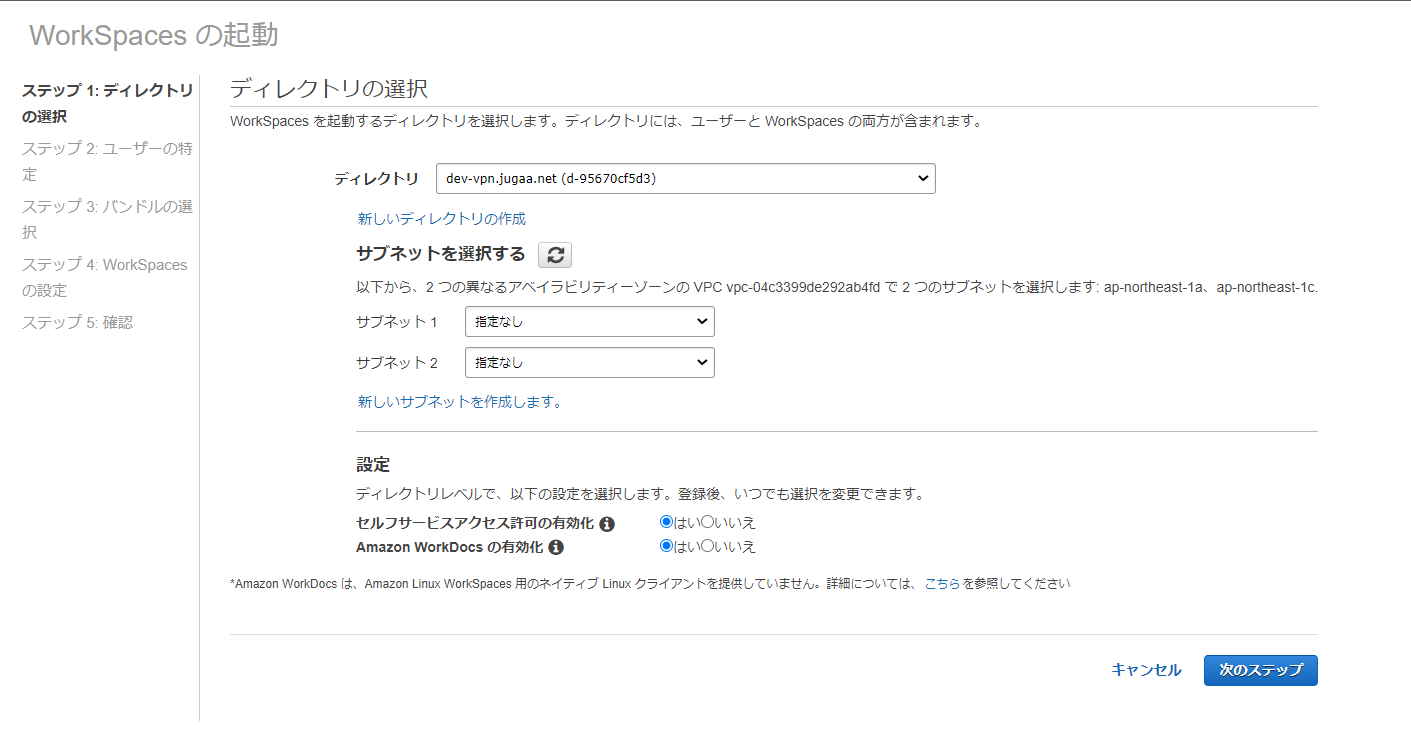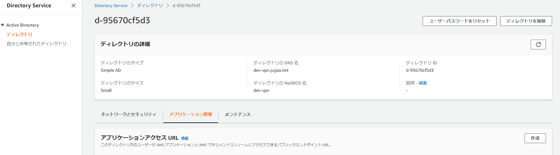 ディレクトリの DNS 名:dev-vpn.jugaa.net