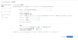 以下のURLからWorkSpacesのページに遷移し「WorkSpacesの起動」を選択する
