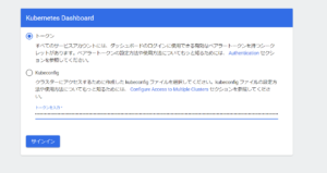 ①Kubernetesダッシュボードにアクセスし上記で取得したtokenを入力する